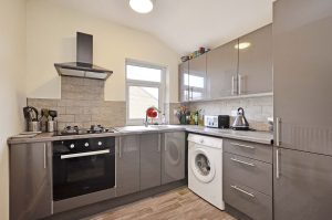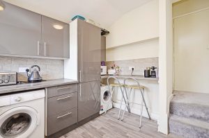 - Appliances: Fridge-freezer, Oven, Microwave, Kettle, Toaster, Washing machine, Tumble dryer, Waste bin, Hob, Vacuum cleaner, TV