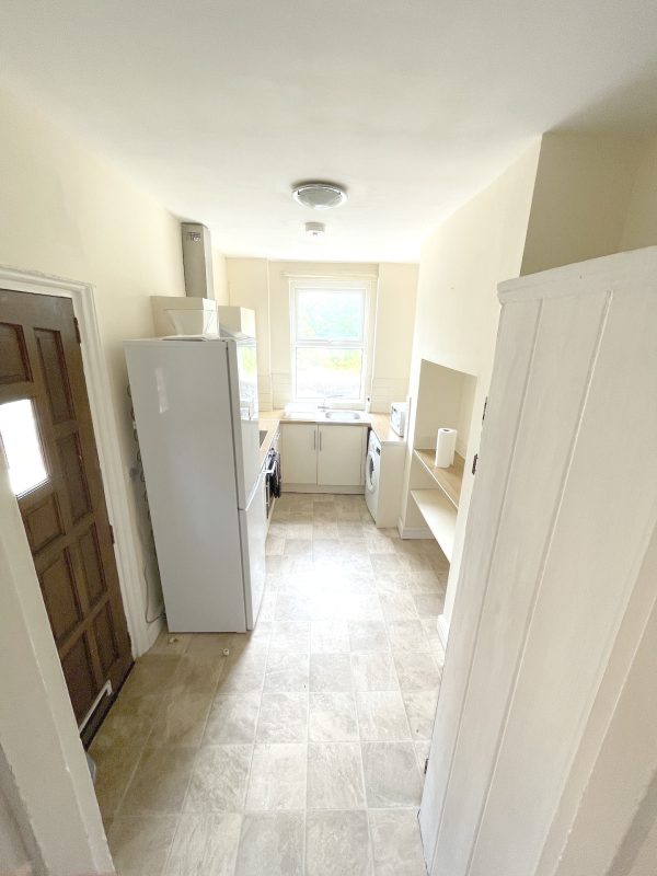- Appliances: Fridge-freezer, Oven, Microwave, Kettle, Toaster, Washing machine, Waste bin, Hob, Vacuum cleaner