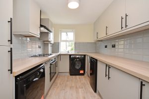 - Appliances: Fridge-freezer, Oven, Microwave, Kettle, Toaster, Washing machine, Tumble dryer, Dishwasher, Waste bin, Hob, Extractor, Vacuum cleaner