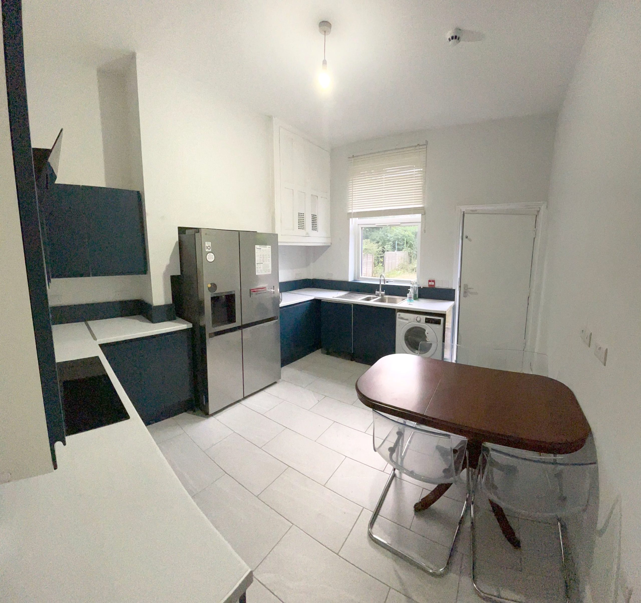 - Further info: Refurbished – Large 7 bedroomed semi-detached house on Ecclesall Road; private parking; large rear garden; spacious double bedrooms.Having undergone extensive renovation in 2024/25, the property benefits from new flooring/carpets, decoration and a spacious layout. The house is set back from the popular Ecclesall Road, with a large private driveway, allowing ample space to park multiple vehicles.Front entrance door leads in to long entrance hallway, with a front separate lounge, rear ground floor bedroom off to the left, kitchen at to rear and staircase leading to 2 floors. Rear door via kitchen opens out onto huge rear garden (can also be accessed via pathway to side of house). Kitchen comprises large, American-style fridge-freezer, washing machine, electric oven & hob, dining table & chairs, and plenty of cupboard space.First floor comprises 3 double-sized bedrooms and shower room with cubicle and gas-integrated shower, and large window which allows for ample lighting and ventilation.Attic stairway leads up to another hallway landing with 3 double bedrooms and another shower room with a Velux window.All rooms include standard furnishings (double bed, freestanding wardrobes, desk, chair, bedside table, etc.).The house is a few mins walk away from Collegiate Crescent and a short walk away from university.Gas central-heating & double-glazed.Bills included: gas/electric/water/broadband/tv licence