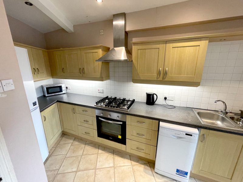 - Appliances: Fridge-freezer, Oven, Microwave, Kettle, Toaster, Washing machine, Tumble dryer, Dishwasher, Waste bin, Hob, Extractor, Vacuum cleaner