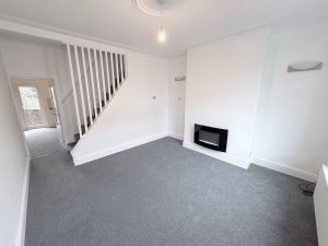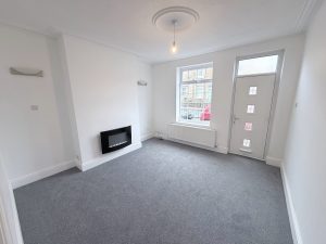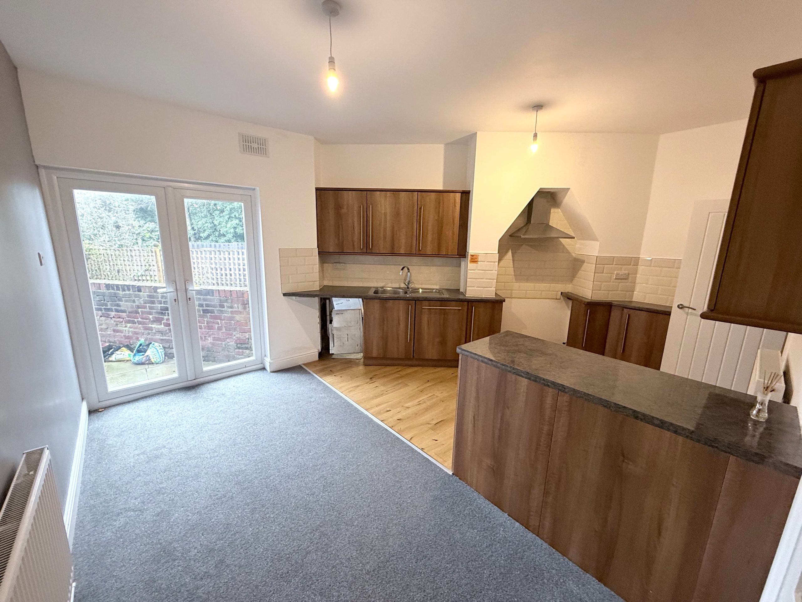 - Further info: This well-presented two-bedroom stone-built mid-terraced home has been recently refurbished throughout and offers modern, low-maintenance accommodation arranged over two floors.The property opens into a bright and spacious front reception room, finished in neutral decor with fresh carpeting and a contemporary wall-mounted electric feature fireplace, creating a comfortable and versatile living space. A staircase rises from the reception room, leading to the first floor.To the rear is a generous open-plan dining kitchen, fitted with a range of modern wall and base units, complementary worktops, tiled splashbacks, and integrated extractor hood. The space benefits from wood-effect flooring to the kitchen area, contrasting with carpeted dining space, and enjoys excellent natural light via French doors opening onto the rear yard (access only) making it ideal for both everyday living and entertaining. Cellar access via door in kitchen, allowing for extra storage needs.Upstairs, the property offers two well-proportioned, double-sized bedrooms, both freshly decorated and newly carpeted, providing flexible accommodation suitable for a professional couple, small family, or home-working setup.The accommodation is completed by a modern-fitted bathroom, including a panelled bath with electric shower over, pedestal wash basin & WC, finished with contemporary tiling and wood-effect flooring.The home has been finished in a neutral colour palette throughout and is presented in ready-to-move-into condition.Gas central heated with uPVD double glazing.Free outside on-street parking.Situated in ideal location, being close to all local amenities, convenience stores, etc.