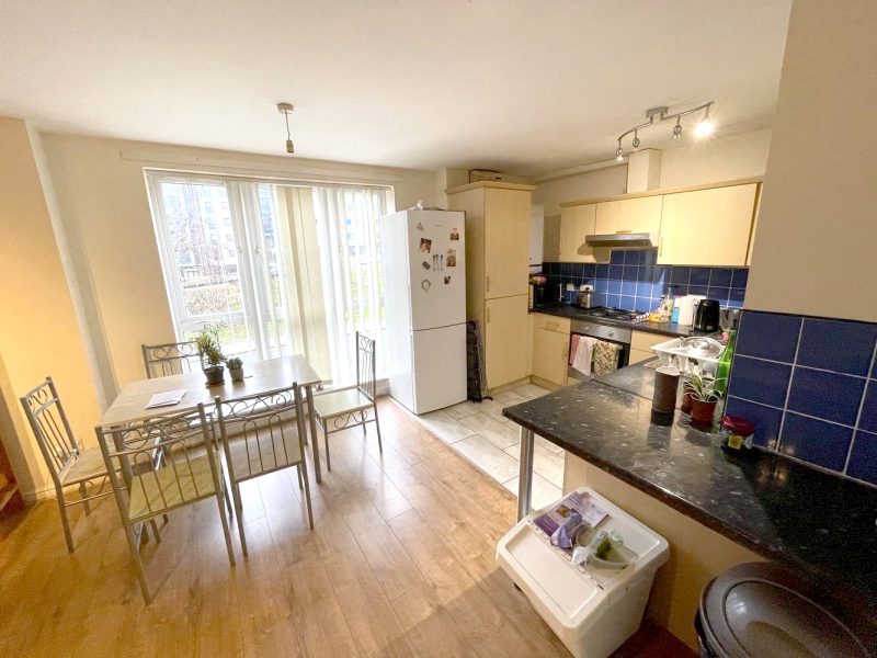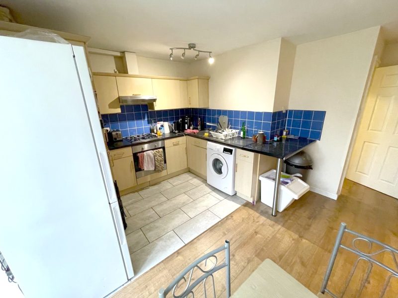 - Appliances: Fridge-freezer, Oven, Microwave, Kettle, Toaster, Washing machine, Waste bin, Hob